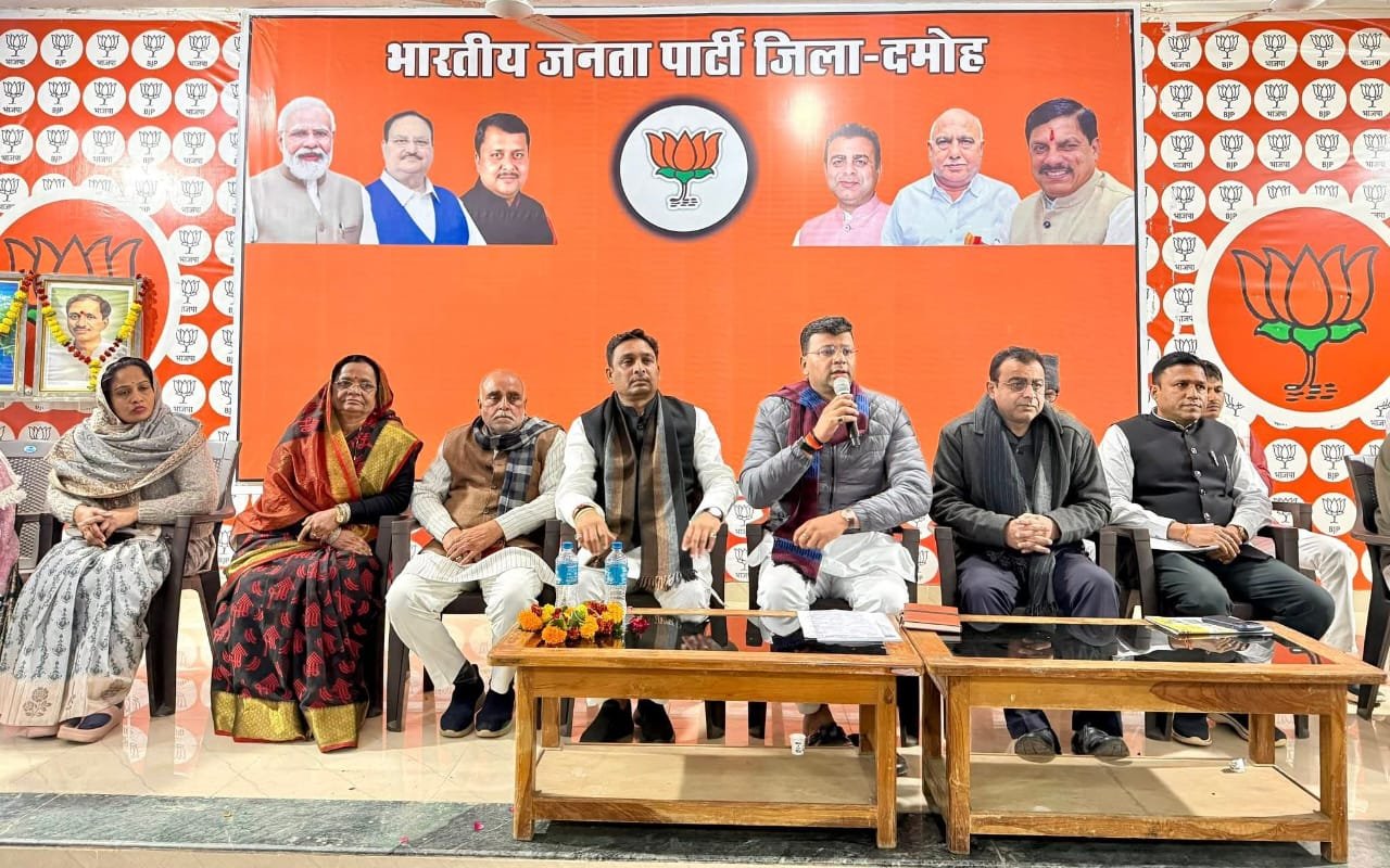 दमोह। दमोह जिला भाजपा की संगठनात्मक कामकाजी बैठक सफलतापूर्वक संपन्न हुई। इस बैठक में प्रदेश महामंत्री एवं सागर संभाग प्रभारी गौरव रणदिवे मुख्य अतिथि के रूप में उपस्थित रहे। उन्होंने कार्यकर्ताओं को संगठन का मूल मंत्र दिया और आगामी कार्यक्रमों पर विस्तृत चर्चा की। बैठक में SIR पर रहा फोकस दमोह भाजपा जिला कार्यालय में…